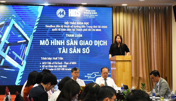 Bà Trần Huế - Co-Founder & CEO VBI Academy trình bày tham luận “Mô hình sàn giao dịch tài sản số”
