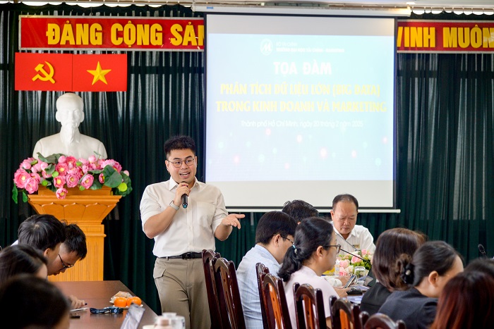 Sáng ngày 20/02/2025, Trường Đại học Tài chính - Marketing tổ chức Tọa đàm “Phân tích dữ liệu lớn (Big Data) trong kinh doanh và Marketing”. Về phía khách mời có sự tham dự của ThS. Cao Tấn Chương, chuyên gia phân tích dữ liệu, công tác tại Công ty Freemavens (UK). Về phía nhà trường, có sự tham dự của PGS.TS. Phạm Quốc Việt, Phó Hiệu trưởng; TS. Cao Tấn Huy, Phó Hiệu trưởng cùng đông đảo các nhà khoa học, giảng viên và sinh viên.